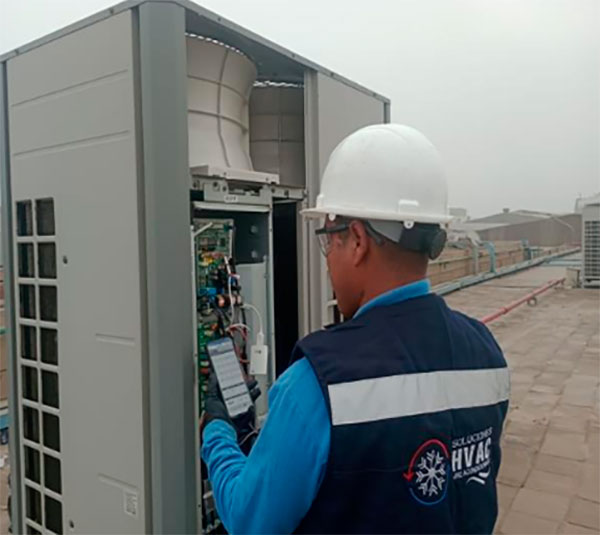 En SOLUCIONES HVAC E.I.R.L, nuestros técnicos están en constante capacitación en las últimas tecnologías y uso de Software adecuado en los diagnósticos de fallas y arranque de los equipos de Aire Acondicionado de sistemas Inverter, VRV y/o VRF, lo que garantiza un servicio competente y actualizado. Además, nos comprometemos a resolver cualquier inconveniente con sus equipos de Aire acondicionado de manera rápida, minimizando el tiempo de inactividad y asegurando su confort.